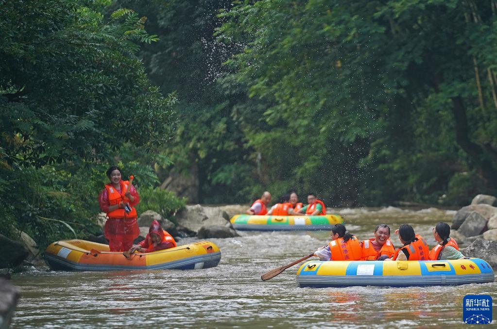 Στι? παρακ?τω αεροφωτογραφ?ε? που τραβ?χτηκαν στι? 2 Αυγο?στου 2022, φα?νονται τουρ?στε? να διασκεδ?ζουν μ?σα σε φουσκωτ? κ?νοντα? ρ?φτινγκ σε ?να φαρ?γγι στο γραφικ? σημε?ο Με?λ?νγκ κοντ? στην Ναντσ?νγκ, την πρωτε?ουσα τη? επαρχ?α? Τζιανγκσ? τη? ανατολικ?? Κ?να?. (φωτογραφ?α/Xinhua)