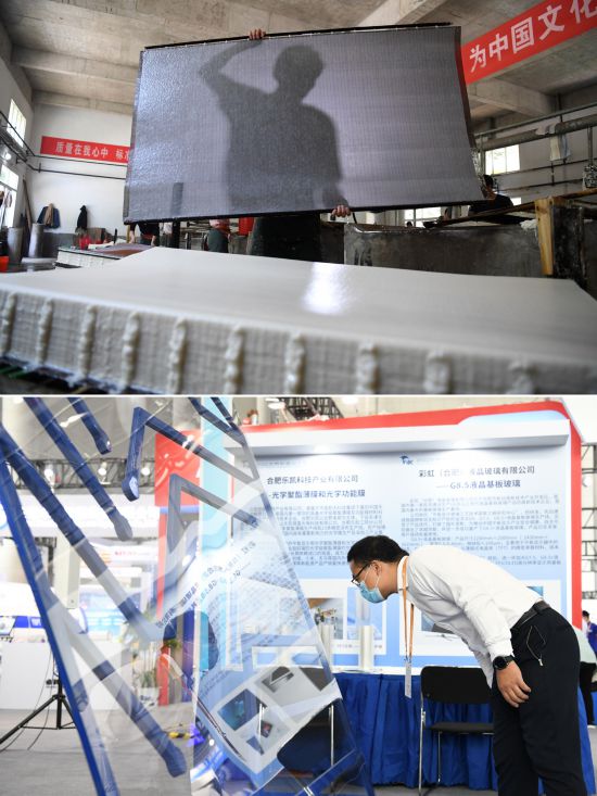 Παρακ?τω: Σεπτ?μβριο? 2022, ?να? ?νδρα? παρατηρε? ?να κομμ?τι γυ?λινου υποστρ?ματο? στο Παγκ?σμιο Συν?δριο Μεταπο?ηση? στην Χ?φε?, στην επαρχ?α ?νχουε? τη? Ανατολικ?? Κ?να?. [Φωτογραφ?α/Xinhua]