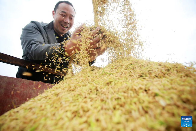 ?να? χωρικ?? συγκομ?ζει ρ?ζι στο χωρι? Σιντ?νγκ τη? κομητε?α? Τζισ?νγκ, στην επαρχ?α Χουν?ν τη? κεντρικ?? Κ?να?, στι? 10 Οκτωβρ?ου του 2022. (Φωτογραφ?α: Li Ke/Xinhua)