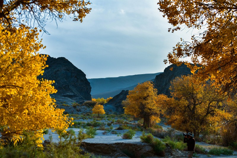 Το φθιν?πωρο, το δ?σο? λε?κα? τη? ερ?μου κ?τω απ? το βουν? Ming Sha στην π?λη Ντουνχου?νγκ, στην επαρχ?α Γκανσο?, ε?ναι γεμ?το απ? δ?ντρα που λ?μπουν σαν χρυσ? και οι τουρ?στε? το επισκ?πτονται μαζικ?. (Φωτογραφ?α: Λα?κ? Καθημεριν? Online )