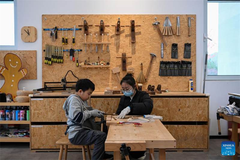 | ?να παιδ? μαθα?νει για την ξυλουργικ? στην περιοχ? επ?δειξη? "?ντεν Τσουνσανλ?" στην περιοχ? Ζιτζ?ου, στο Τιεντζ?ν τη? β?ρεια? Κ?να?, 11 Μαρτ?ου 2023. (Φωτογραφ?α / Xinhua) |