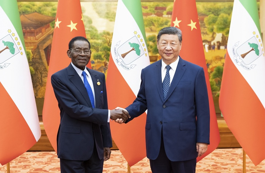 Ο Κιν?ζο? Πρ?εδρο? Σι Τζινπ?νγκ συναντ?θηκε την Τετ?ρτη με τον Τεοδ?ρο Ομπι?νγκ Νγκ?μα Μπασ?νγκο, Πρ?εδρο τη? Δημοκρατ?α? τη? Ισημεριν?? Γουιν?α?, ο οπο?ο? βρ?σκεται στο Πεκ?νο για τη Σ?νοδο Κορυφ?? του 2024 του Φ?ρουμ για τη Συνεργασ?α Κ?να?-Αφρικ?? (FOCAC).