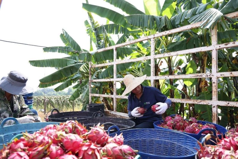 Αγρ?τε? στην κινεζικ? επαρχ?α ταξινομο?ν φρο?τα του δρ?κου σε ?ναν πειραματικ? σταθμ? Κ?να?-Λ?ο? στη Βιεντι?ν, Λ?ο?. Φωτογραφ?α: People's Daily