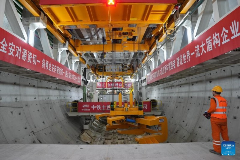| ?να? τεχνικ?? απ? την China Railway 14th Bureau Group Co., Ltd. ελ?γχει τη λειτουργ?α τη? μηχαν?? δι?νοιξη? σηρ?γγων "Yongzhou" στην υποθαλ?σσια σ?ραγγα Jintang τη? σιδηροδρομικ?? γραμμ?? Ningbo-Zhoushan στην επαρχ?α Zhejiang, ανατολικ? Κ?να, στι? 25 Φεβρουαρ?ου 2025. |