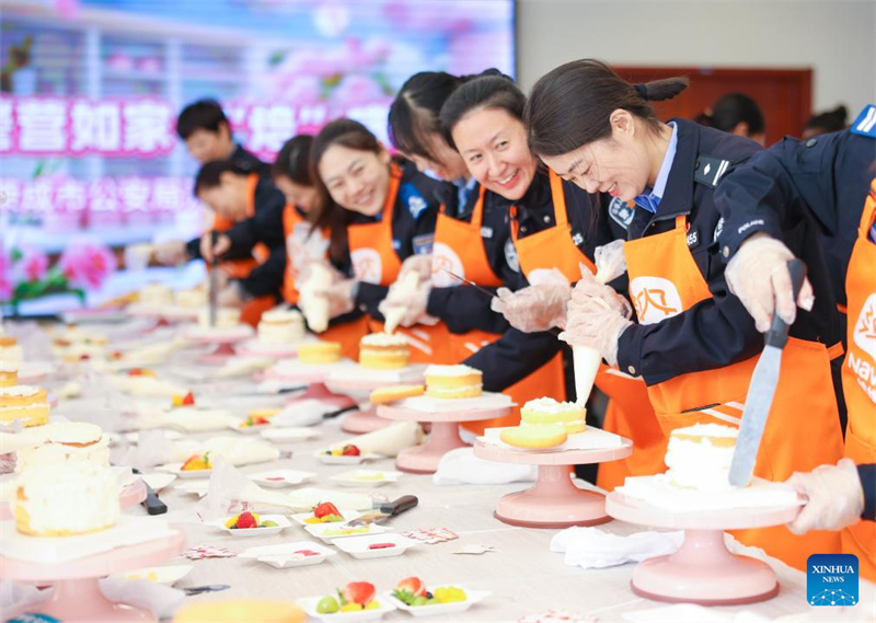 | Γυνα?κε? αστυνομικο? φτι?χνουν γλυκ? κατ? τη δι?ρκεια εκδ?λωση? στην π?λη Ρονγκτσ?νγκ, επαρχ?α Σαντ?νγκ, ανατολικ? Κ?να, στι? 6 Μαρτ?ου 2025. Φωτογραφ?α / Xinhua |