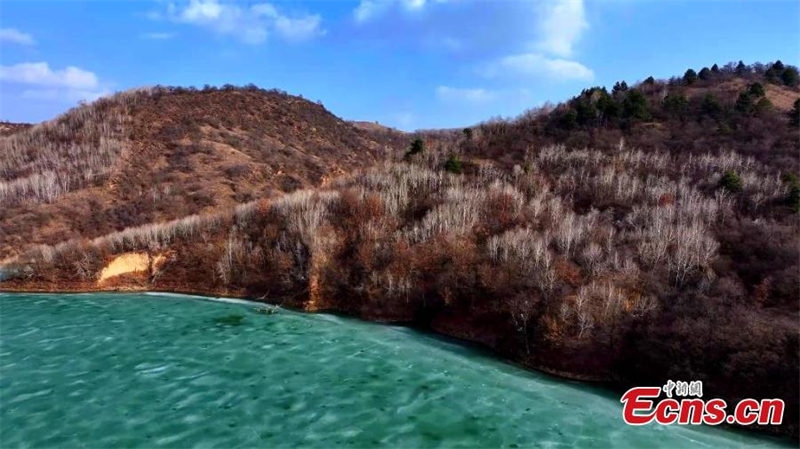 Η δεξαμεν? νερο? Γιουετο?ν που μοι?ζει απ? ψηλ? με νεφρ?τη προσθ?τει χρ?μα στο οροπ?διο Loess καθ?? η θερμοκρασ?α αυξ?νεται στην Γιαν’αν, στην επαρχ?α Σαανσ? τη? βορειοδυτικ?? Κ?να?.