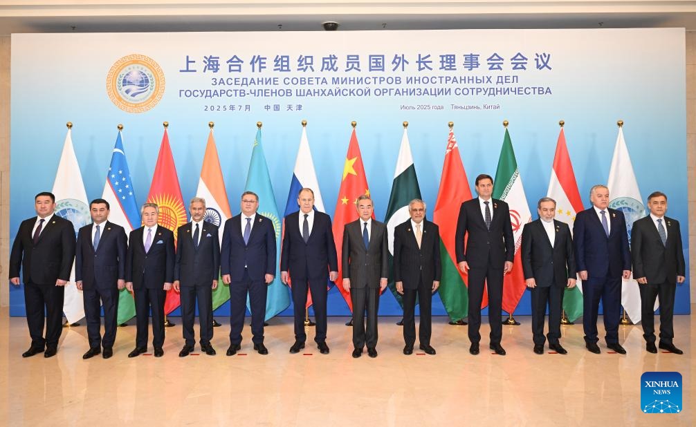 Ο Κιν?ζο? υπουργ?? Εξωτερικ?ν Γου?νγκ Γι προεδρε?ει τη? συν?δου των υπουργ?ν Εξωτερικ?ν των κρατ?ν μελ?ν τη? Οργ?νωση? Συνεργασ?α? τη? Σαγκ?η? (Shanghai Cooperation Organization - SCO) στην π?λη Τιεντζ?ν, τη? β?ρεια? Κ?να?, στι? 15 Ιουλ?ου του 2025. (Xinhua/Li Ran)