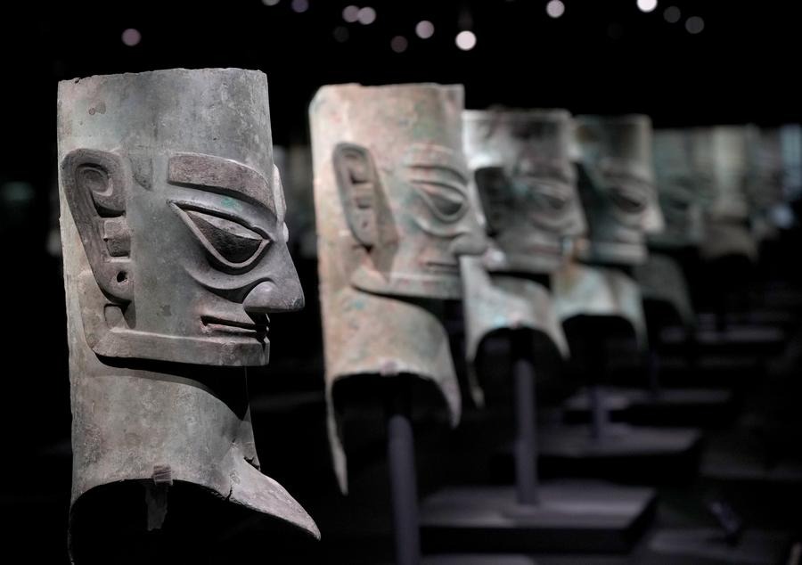 Χ?λκινα κεφ?λια εκτ?θενται στο ν?ο κτ?ριο του Μουσε?ου Σανξ?νγκντουι στην π?λη Γκουανγκχ?ν, στην επαρχ?α Σιτσου?ν, νοτιοδυτικ? Κ?να, 18 Δεκεμβρ?ου 2024. (Xinhua/Wang Yuguo)