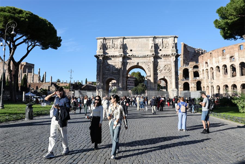 Μια Κιν?ζα τουρ?στρια ποζ?ρει για μια φωτογραφ?α στη Ρ?μη τη? Ιταλ?α?. (Φωτογραφ?α / Xinhua)